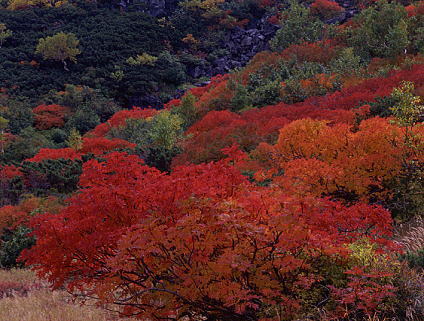 位ヶ原の登山道でのナナカマド。葉が紅い、というより、山全体が