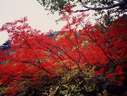 乗鞍岳の秋。ナナカマドの葉がこれだけ見事に紅葉するのは