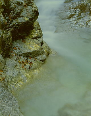 上を見上げると、渓谷の紅葉が見事だった。太陽の光が紅葉に反射して、この渓谷に光が