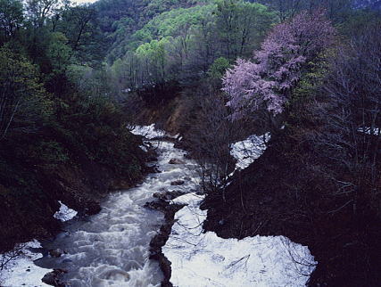 深い山間にも遅い春がきた。雪解け水で水かさを増した川の流れ、